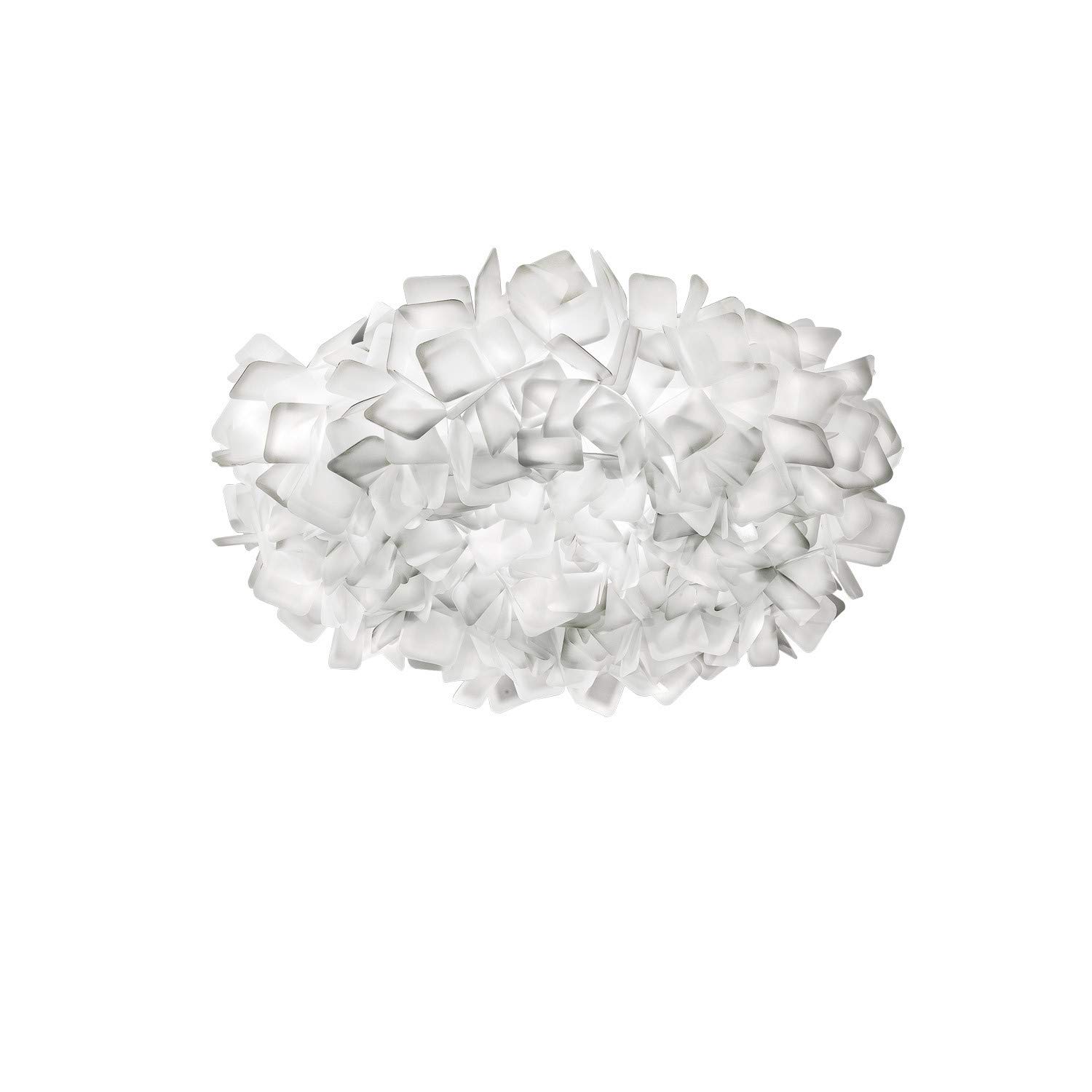 Material: Opalflex Colour: White. Dimensions: 80 x 78 x 30 cm. Number of bulbs required: 3. Bulb mounting: E27 Review: ho acquistato due lampade slamp-clizia, una da sospensione misura media, per la camera e una large da soffitto per il soggiorno, sono davvero belle e facili da montare. Ho preso luci led fredde, forse sarebbe stato meglio luce naturale per un effetto migliore. Review: Produits arrives en 3 jours alors que delais etait 16 jours Ces lampes sont vraiment magnifiques et extremement originales Vivement qu'elles soient installees