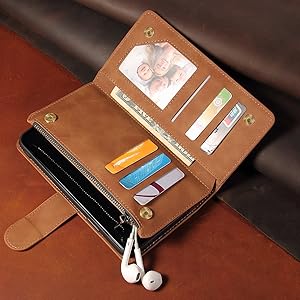 The UEEBAI Wallet Case is a premium, handmade PU leather flip cover designed for iPhone 7, 8, SE 2020, and SE 2022 5G models. It features a secure magnetic closure, multiple card and cash slots including a zipper pocket, and a built-in kickstand for hands-free viewing. With precise cutouts and reinforced stitching, it offers comprehensive protection and convenience for the modern professional on the move.