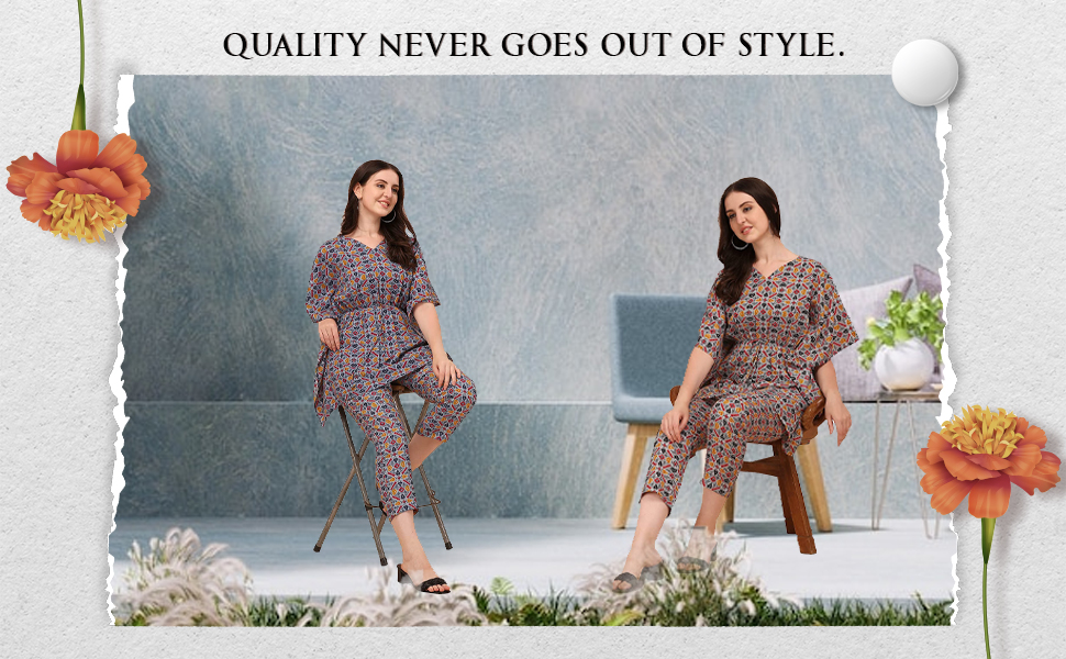 NAINVISH Cotton Blend Kurta Pant Set | Ethnic Kaftan Co Ord Pant Set | Casual Wear Kaftan Pant & Top Set | Fancy Kaftan Top & Pant Set | Women Top & Pant