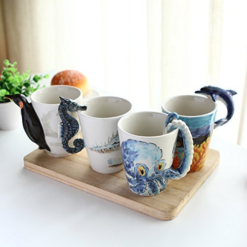 HOMEEHandmade Creative Art Coffee Mug Ceramic Milk Cups Ocean Style (Octopus)