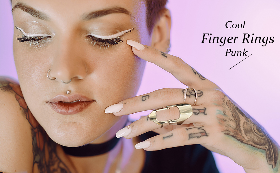 UareinHollow Knuckle Joint Finger Activity Ring.Silver Double Loop Rings Gothic Hinged Rings Punk Jewelry Halloween Gifts for Women Girl
