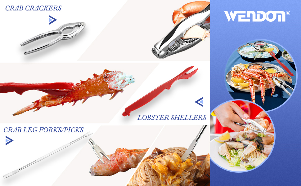WENDOM Crab Leg Crackers and Tools Set of 8, 27Pcs include 8Crab Crackers,8Lobster Shellers,8Crab Leg Forks/Picks,2Seafood Scissors& Storage Bag Heavy Duty