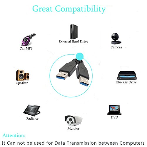 Description Sweel USB A male to A male cable is designed for data transfer between various peripherals and computer, and creat a convenient connection to hard-drive enclosures, printers, modems, cameras etc. Super Speed USB 3.0 This USB 3.0 cable provides super-fast data transfer speeds of up to 5 Gbps,10x faster than high speed USB 2.0. Great compatibility The usb 3.0 data transfer lead support USB 3.0 devices and backwards compatible with USB 2.0 and USB 1.1, in a word, compatible with all USB-supported devices. Kindly Note This usb cable just for data transmission between usb peripherals and computers, does not support transferring data between two computers. Package Contents One Sweel USB 3.0 Type A Male to Male Cable