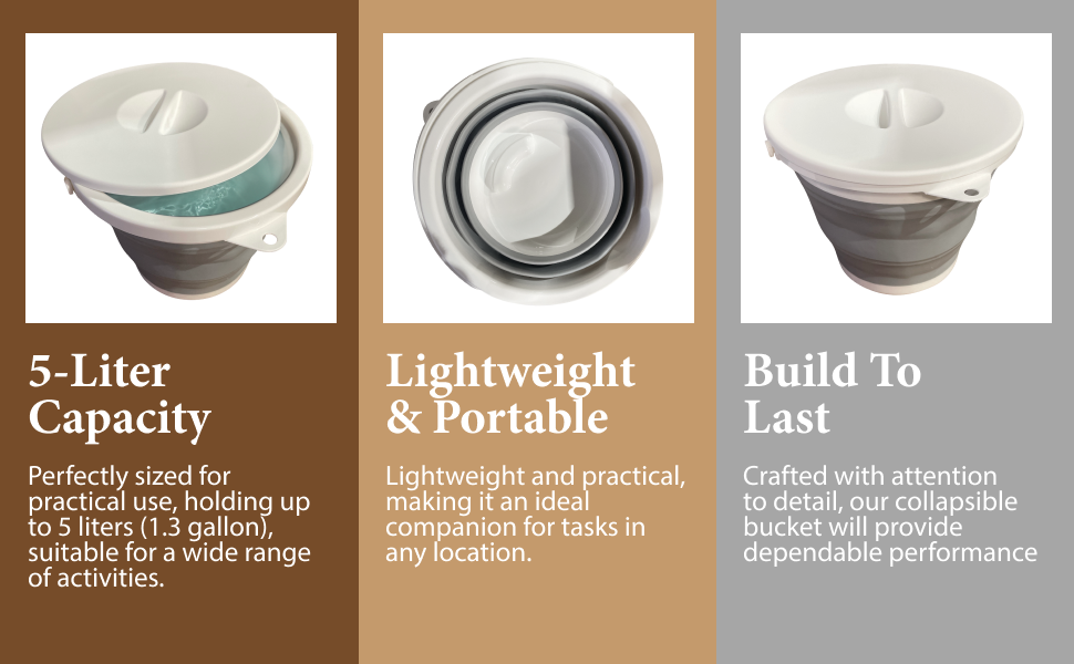 Southern HomewaresCollapsible Bucket with Lid, Space-Saving Durable, & Portable for Home, Outdoors, and Travel Use, Round, 5-Liter
