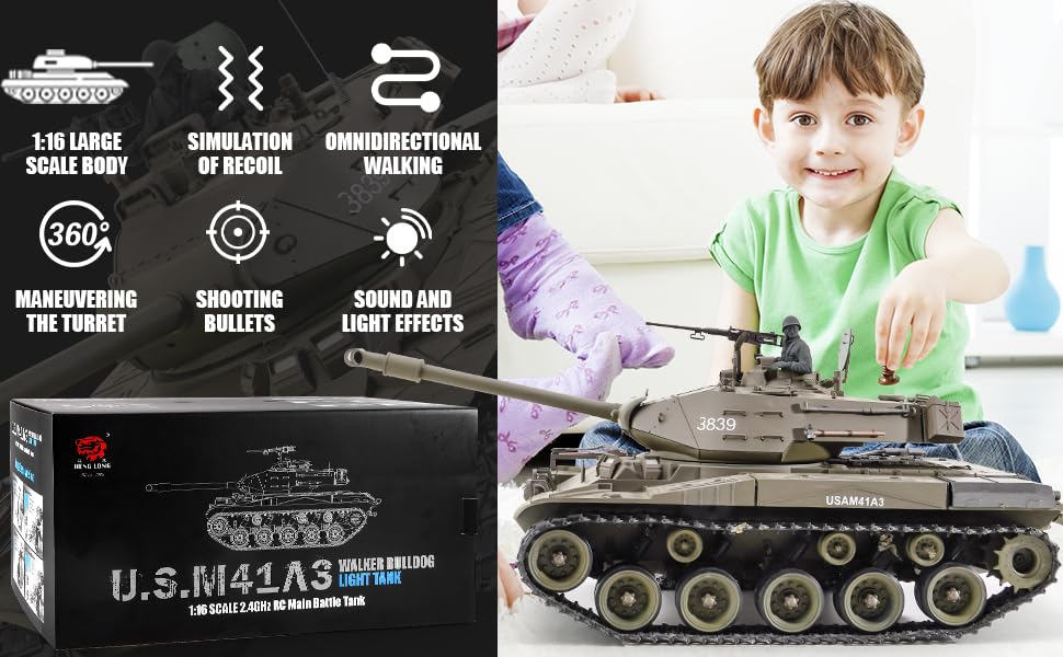 The Heng Long 1/16 Scale RC M41A3 Walker Bulldog Tank is a meticulously detailed remote-controlled model designed for both play and collection. Featuring advanced control systems, realistic sound and light effects, and the ability to engage in infrared combat, this tank is perfect for military fans aged 14 and up. With a robust build and collectible value, it makes an ideal gift for any occasion.