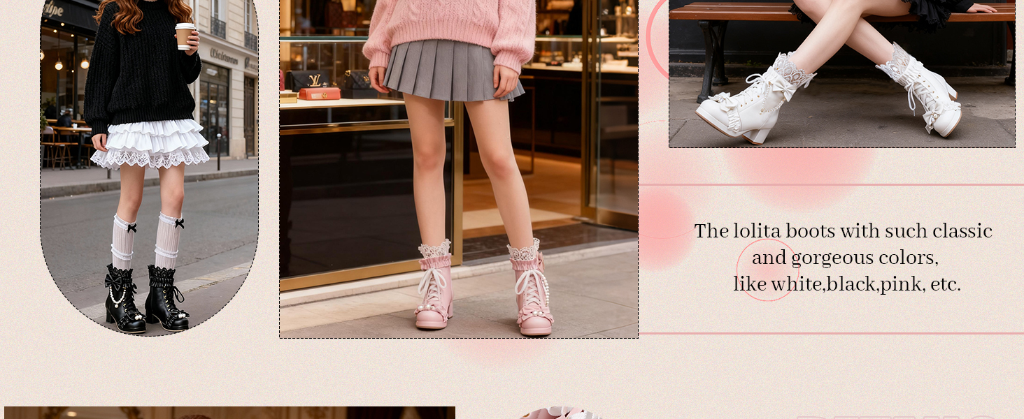 LUXMAXWomen Cute Lolita Boots Chunky Mid Heel Ankle Boots with Bow Platform Lace Up Booties with Pearl, Size