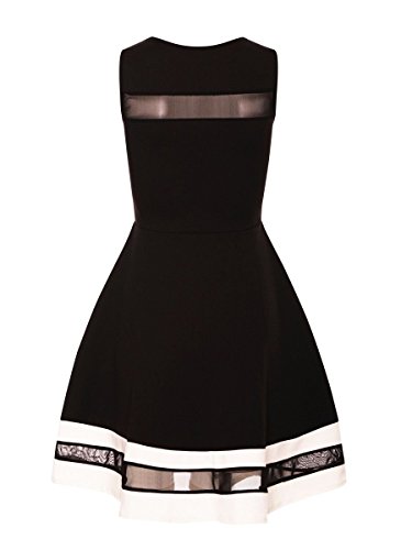 Show off your fashion credentials in this two-tone, structured prom dress that nipped you in and boasted a mesh neckline with a striking, red striped hem and black striped hem, Choice is yours