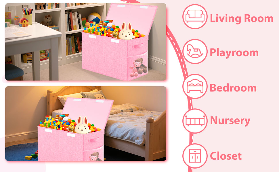 I recently bought this large toy box for my toddler, and it has exceeded all my expectations! The design is both practical and attractive, making it a great addition to my kid's room.### **Pros:**- **Spacious Storage:** The box is large enough to hold all my toddler's toys, books, and even some extra blankets.- **Collapsible Design:** I love how easy it is to set up and fold away when not in use. It’s perfect for saving space!- **Sturdy and Durable:** Despite being lightweight, the box feels sturdy enough to handle daily use by an active toddler.- **Kid-Friendly Lid:** The lid keeps the toys organized and hidden, giving the room a neat and tidy look.- **Bright and Fun Design:** My child loves the colorful design, and it blends well with the room decor.### **Conclusion:**This toy storage box has made organizing my toddler's room so much easier. It’s functional, durable, and affordable—highly recommended for parents looking to declutter and organize their kids' toys!