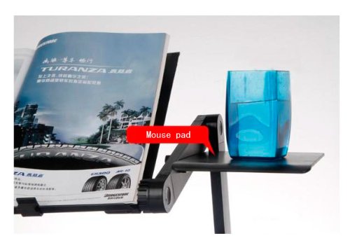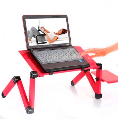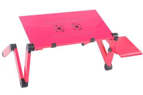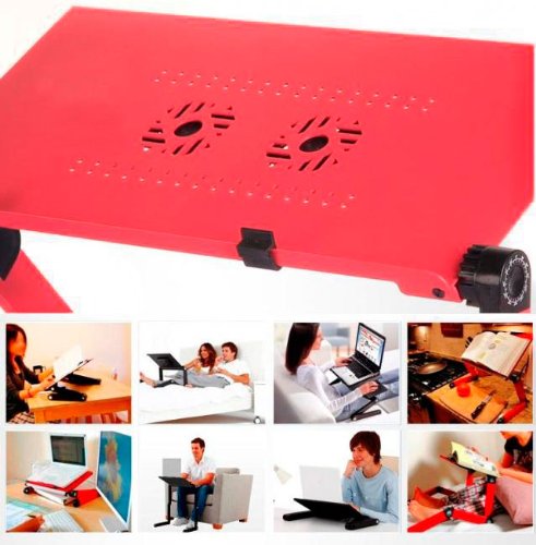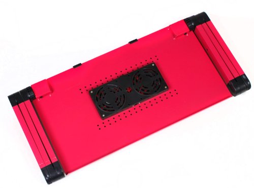 Adjustable Vented Laptop Table/Portable Bed Tray Book Stand Dual Layer Tablet Features: Can be set in multiple angles to fit any body position, even laid back on your bed; just hold the button on the joints, change the position, and release the button to lock it in place Grooved table surface to prevent slippage, and wrist guard added for extra comfort Weighs 5 pounds and can support up to 30 pounds; height is adjustable from 11.25 inches to a full height of 22 inches 100% aluminum alloy composition provides sturdiness and a stylish look Collapsible frame for easy storage and portability Suitable for laptops up to 17 inches Package: 1 * Adjustable Vented Table