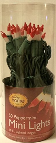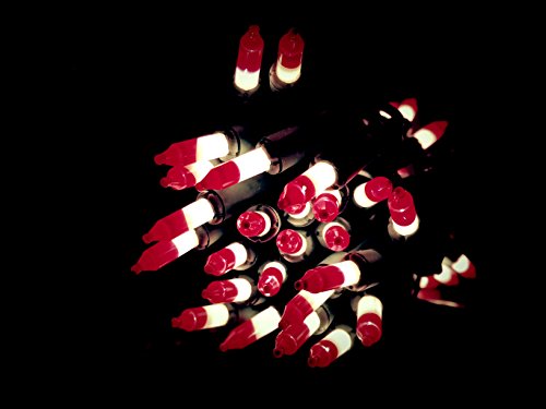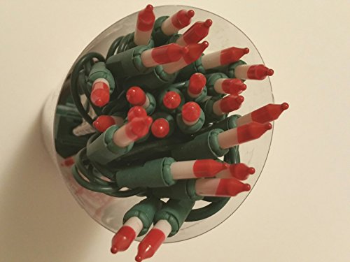 Set of 50 Red & White Peppermint Candy Cane Mini Christmas Lights - Green Wire
