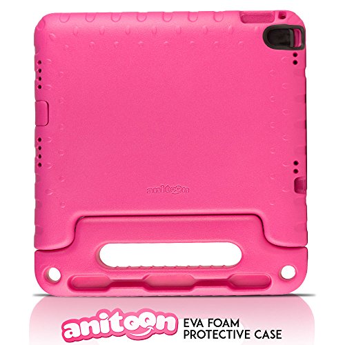 iPad Pro 9.7 Inch Case - ANITOON Bubble Kids Case Cover [Made from Tough EVA Foam] Introducing our Bubble Shockproof series carrying cases for your iPad! Feel free to safely let your child use your iPad while watching media or traveling on the go to grandma and grandpas house. Great for car rides, school, or around the house. Anitoon was specifically designed for convenient and safe use for your child. Use for of all ages. The perfect comfortable fit for your iPad tablet! Anitoon is made of light weight high quality EVA silicone providing ultimate protection and versatility. Anitoon Bubble Features • The flexible Anitoon Bubble kid's case constructed to be impact resistant. EVA foam is UV resistant, long lasting, and stress-crack resistant • Soft foam is kid friendly and mother approved • Firmly holds iPad in place, maintaining access to volume, power, and home button keys • Armed with a 90 degree folding handle which can also be used as a stand! Enjoy your media while holding or hands free! • Comes with slot for earphone jack and slot for the USB sync cable to charge your device. Compatibility: Fits iPad Pro 9.7 Inch Installation: Easily slip the iPad in and out of the rear of the foam case with the device facing frontwards. Note *Anitoon shockproof case does not come with screen guard this will not protect glass screen from any moisture or dirt*