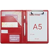 The Mymazn A5 Clipboard Folder is a compact, premium faux leather portfolio designed to hold A5-sized documents and writing pads. Featuring a sturdy low-profile clip that secures 50-80 pages, multiple organizational pockets, and a sleek design, it’s perfect for professionals seeking a stylish, travel-friendly solution for meetings and daily work. Weighing just 286g, it fits easily into bags and comes with a 3-month satisfaction guarantee.