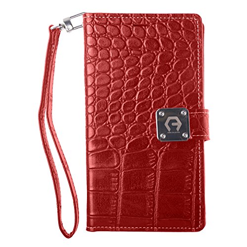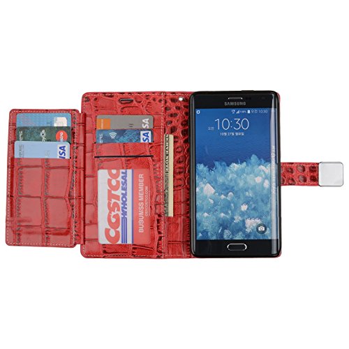 Note Edge Crocodile Synthetic Leather [Wristlet] [7 Card Pocket] Case - Premium Crocodile PU Leather Case Magnetic Lock For Galaxy Note Edge N9150 (Red)