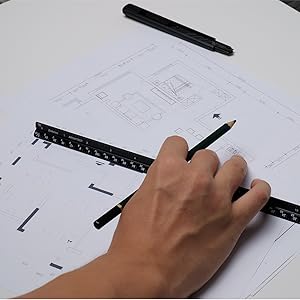This 12-inch architectural scale ruler features 11 laser-etched imperial scales on a durable black aluminum triangular body with chamfered corners for safety. Designed for architects, draftsmen, and students, it offers fade-resistant markings, ergonomic grip, and long-lasting durability—making it the ultimate professional drafting tool.