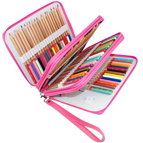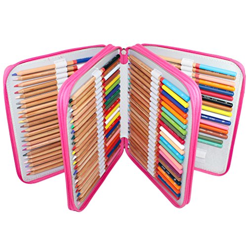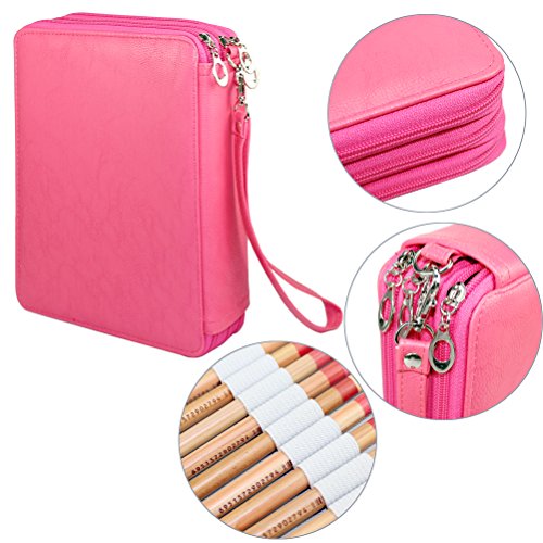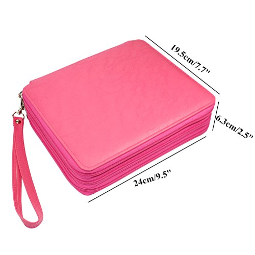 120 Slots Pencil Case,PU Leather Multi-layer Large Pencil Holder with Handle Strap Worth to own: ★High quality PU Leather & Oxford fabric:makes it durable ,and you can use it for a long time. ★Super large capacity:Three layers pencil case,120 pencils can be carried in,it will be organized. ★Zipper closure.it is opened and closed with metal zipper,makes it convenient to use. ★Portable handle:with a nice and removable handle strap.so that you can carry it with you whenever and wherenever you want to go. ★Ideal gift:perfect design,it would be a nice gift for your friends,and they also will love it. Specification Material:PU leahter ;Oxford Fabric Size:24 cm x 19.5 cm x 6.3cm/9.4" x 7.6" x 2.5"(L x W x D) Layer:3-Layer Slot:120-Slot Package Included: 1 x Pencil Case (Pencil Not Included)