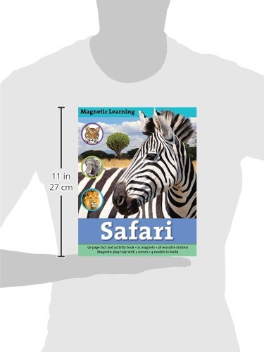 Magnetic Learning: Safari introduces children ages 4 and up to the fascinating creatures that roam across the African savanna. From ferocious lions and wily crocodiles to clever elephants and mighty gorillas, a wide range of animals are featured on these pages. Reusable magnets and stickers, along with 3-D models, will keep kids engaged as they learn all about the animals of the savanna. Interchangeable scenes for the magnetic board enable kids to create their own displays for various habitats on the savanna.Includes:• 56-page fact and activity book• 37 rubber magnets• Magnetic display board with 5 interchangeable savanna scenes• 34 reusable stickers• Four animal models