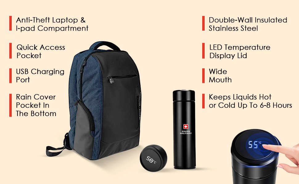 Combo of Men’s Travel Backpack with Utility & Quick Access Pockets, Durable, Water & Wear Resistant Design, Spacious, Lightweight & Ideal for Office, College & Daily Travel