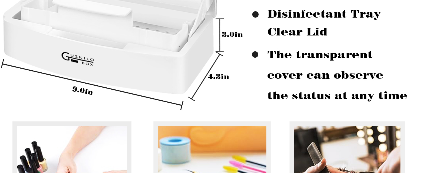 Gusnilo Sanitizing Tray - Disinfectant Container Nail Tool Sterilizer Box Plastic Sanitizing Box for Nail Tools, Hair Salon,Spa (Clear Lid, white)