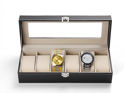 For all of those watch enthusiasts this is the perfect vintage-style box to store and carry your favorite timepieces. Beautiful and elegant, it will cushion the owner's watches securely on individual pillows. The lid features a clear glass to enable easy viewing of the watches inside.
