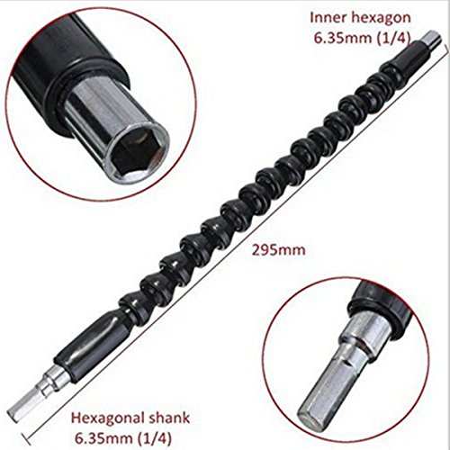 Specification: Material: Plastic + metal Color: Black Size: Length: about 295m(12 inch) Connection hex shank drill site size 6.35mm (1/4) Connecting parts of the batch Hex size 6.35mm (1/4) Main Usage: This Flexible shaft/ connecting link can be used for ordinary shaft-type hand drill chuck electric screwdriver (clamps 1/4). Shafthead can be mounted hexagonal shank (1/4 shank screwdriver bits), Particularly, This flexible safit used in computer chassis, electrical cabinets, furniture, appliances and so narrow space. Some place which a screwdriver dead can not work, you can used this Flexible shaft/ connecting link. Package Contents: 1 * Flexible Extention Screwdriver Drill Bit 1 * Drill bit set