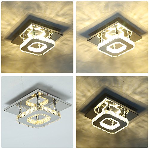 Modern Crystal LED Ceiling Light Pendant Flush Lamp Stainless Steel Fixture Lighting Chandelier Specification: Features: Bulb Included, LED Style: Modern / Contemporary Suggested Room Fit: Hallway, Dining Room, Bedroom Material: Metal,Crystal Light Color: Cool White, Neutral, Warm White Voltage: 85-265V LED Bulb Base Wattage: 12w Size:21*21*9cm/7.9*7.9*3.5in Suggested Room Size: 5m² Package included: 1 Set Single-Lamp 3-Colors Ceiling Light
