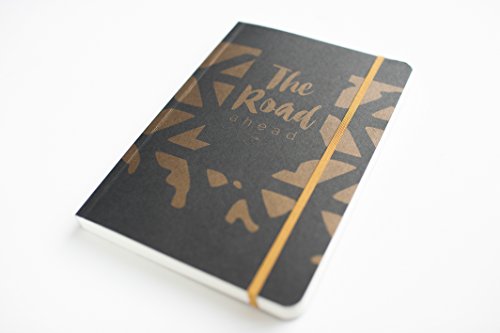 A quality, chunky A5 notebook made by the good folk at Notebook Love. Featuring a bold design of a gold tyre tread mark and the words, "The Road Ahead" against a thick textured charcoal black cover, this notebook will please any notebook lover. With 192 ruled cream pages (Forest Stewardship Council approved), elasticated closure and matching inside cover, it is perfect for writers, travel journalling, new year resolutions, future plans, to-dos or the thoughtful gift.