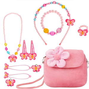 SANNIDHI® Kids Jewellery Set for Girls, Plush Handbag, Necklace, Bracelet, Ring, Hairband, Hair Clips Kit, Cute Jewellery Princess Party Costume Jewelry for 3-10 Years Old Birthday Christmas Gifts