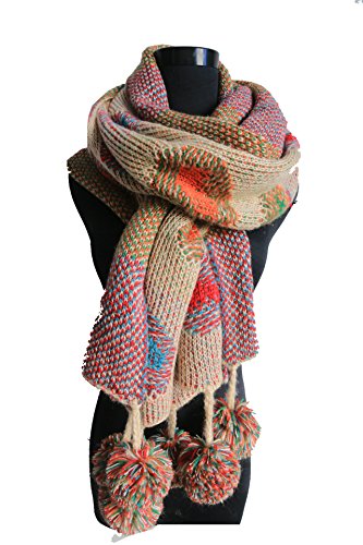 Size(about): 78.7"*14.2"(200cm*36cm).Material:wool+acrylic yarn.Multifunction use long scarf with balls,Soft handmade knitting feeling, warm and comfortable,and easy to wear for a various fashion. perfect for this Winter.You can dress as a shawl or wrap and also you can wear as scarf with your casual outfitThis fashion scarf would be a nice gift for your loved ones or yourself.