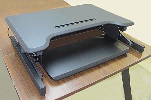 Sitting in front of computer all day long will not be healthy for body circulation, you can consider Ergoneer standing desk to assist you switch between siting and standing easily. Unlike other standing desks which have height options limit, Ergoneer desk allows you adjust to any height from 17 to 42cm without limit of incremental height options. The Gas Spring Hovering System allows a smooth and stable movement, just simply squeeze both levers, push with little force forward down, then release them to achieve your desired height in couple of seconds. Moreover, Ergonomic two-tier shelf design with separate keyboard and desktop keeps monitor at proper viewing height to make your wrist and arm stay in a comfortable healthy positions. The desk is made of high quality MDF (15mm thick) which is scratch-resistant high-pressure laminate. Premium metal frame providing a 50lbs capacity of load in the static case, and 16 kg in the case of up/down movement. This standing desk is fully assembled, and ready to use while unpack to place on desk. 3-year limited warranty is provided from seller/manufacturer.