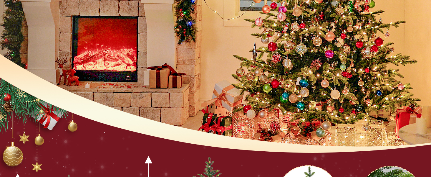 The Hykolity 7.5 ft Prelit Aspen Fir Christmas Tree features 1173 PE & PVC branch tips for a lush, natural look, pre-strung with 450 warm white LED lights for instant holiday ambiance. Its hinged branches enable quick setup and easy storage, supported by a sturdy metal stand for lasting stability. UL-listed LEDs and non-flammable materials ensure safety, while a 1-year warranty guarantees quality and customer satisfaction.