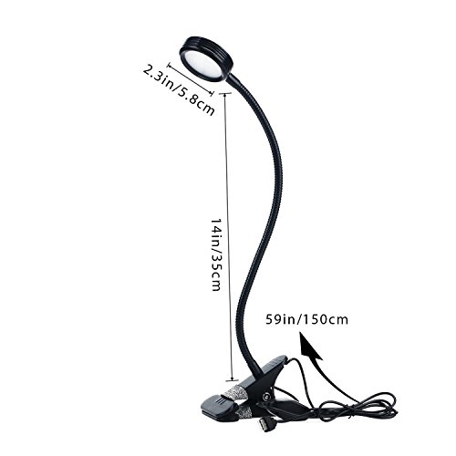 Features: The grow light is well built and powered by a USB connection. It features a strong clamp to keep the light in place. Easy to install at your home or office and convenient to operate. The LED lights are dimmable with low, and high brightness levels. This allows you to vary the intensity of the light for different plant requirements or different times of the day. Blue light is good for photosynthesis, and helps to induce Chlorophyll and Carotenoid; red light is best for blooming and fruits, and is the key for flowering plants. Color :black Material: stainless steel, plastic, aluminum Dimensions : item length: 20" gooseneck length: 14" light head diameter: 2.3" cable length: approx. 59" Specifications: LED beads quantity: 16 pcs LED color: red (660nm 11pcs), blue(460nm 5pcs) Luminous flux: 1 (Im/W) Power: 8W Input voltage: AC100V-240V Working current: 0.3-2A Package: 1 x LED grow light