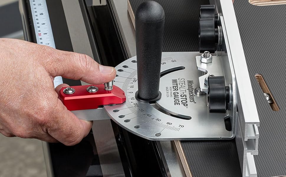 The Woodpeckers StealthStop Miter Sled is a precision-engineered cross-cut sled crafted from durable Baltic Birch plywood with a low-friction laminate. Featuring an innovative leaf-spring miter bar for snug fits on any table saw, above-table adjustments, and a protractor with positive stops for multiple polygon cuts, it delivers unmatched accuracy and versatility. Compact yet extendable, with instant flip stops, it’s designed for professional-grade woodworking projects and built in Ohio to exacting standards.