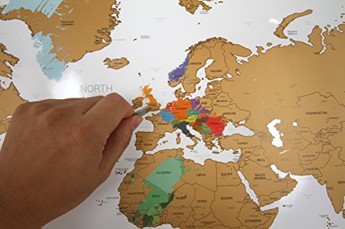 Track your travels with this scratch-off Maps The Map allows you to reveal everywhere you have been on your travels. It's the perfect map or gift for the travel enthusiast allowing complete personalization of the map to display a unique travel story. We carefully inspect every product before shipping and use superior quality paper, paint and coating to be sure you will be satisfied. Relive and Share Your Adventures - While you wait for next holidays, our map will remind you of all the distant places you've been to and will help you find exciting new destinations when the travel bug hits you hard. It will also help you to subtly brag about your geographical conquests every time someone comes over! PERFECT GIFT FOR YOUR FRIENDS - inspire others to explore the world and turn your homebody buddies into enthusiastic travelers! Even for the least adventurous it will work great as a stylish poster or a semi-educational tool for children. Size : 138.1 X 23.6 inches (970 X 600 mm) * Not included the Antarctic