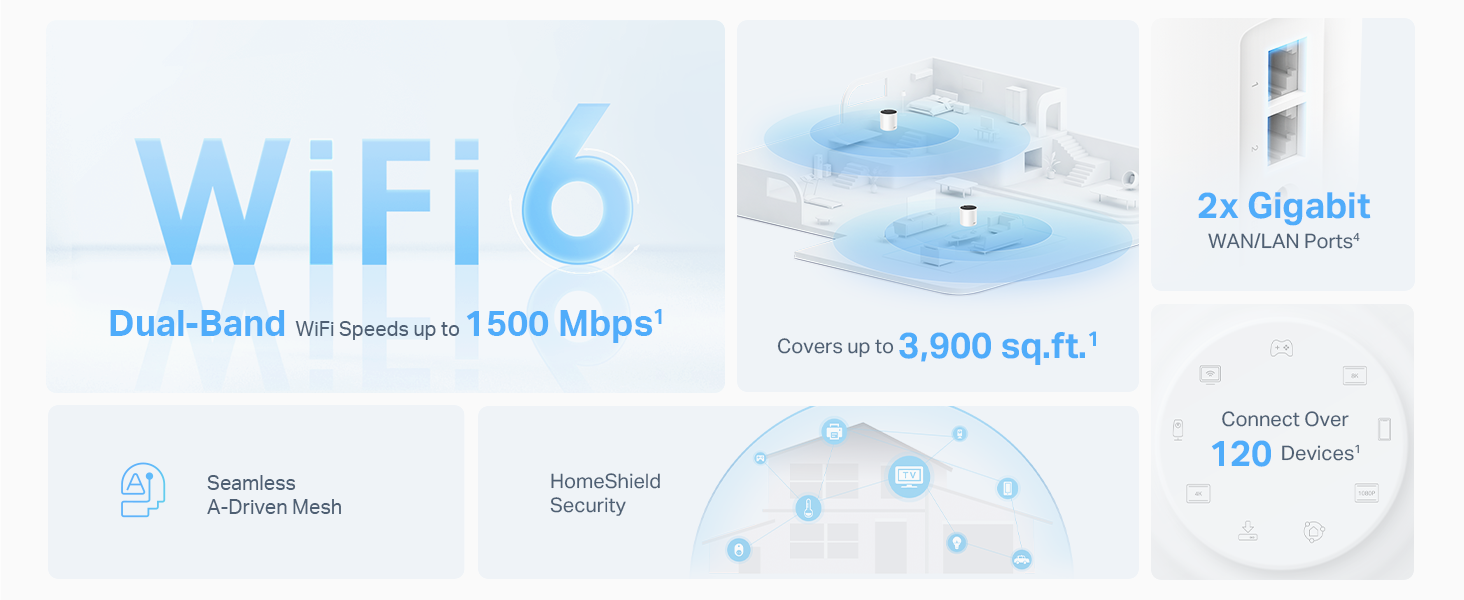 - BLAZING FAST WI FI 6 PERFORMANCE - Experience ultra-fast 1.5Gbps dual-band speeds that keep your entire home connected without lag.