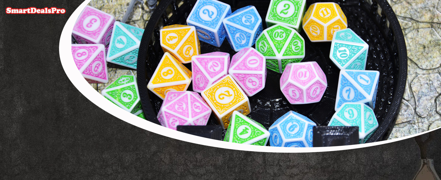 Great Starter Dice SetI bought these when I first got into D&D and they were perfect for a beginner. The colors are vibrant, the numbers are easy to read, and they roll nicely. Each set even came with its own little pouch, which made it easy to keep everything organized. Years later, I still have them and they’ve held up great through lots of gaming sessions.★★★★★ (5/5)